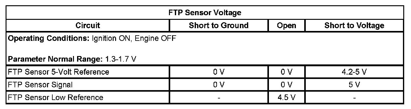 - Fuel Tank Pressure (FTP) Sensor Circuit Low Voltage
