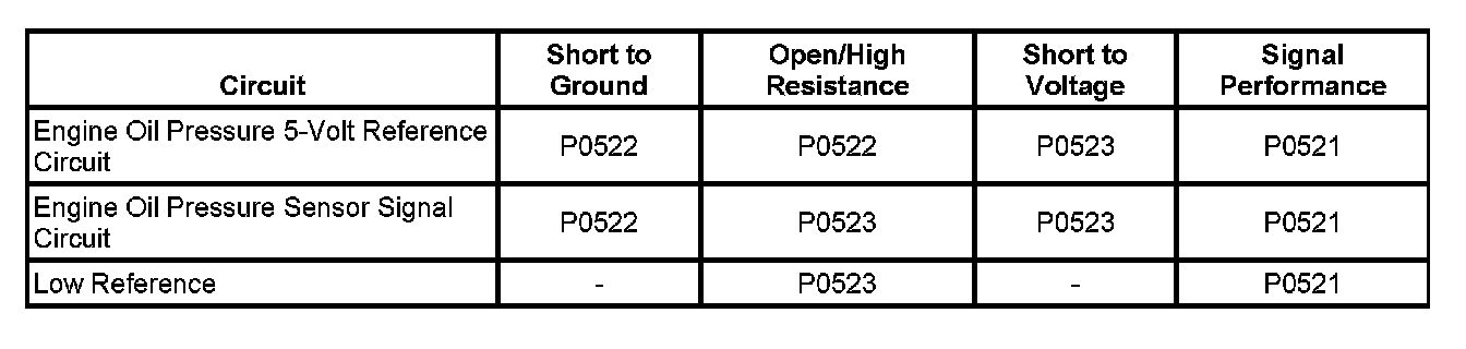 - Engine Oil Pressure (EOP) Sensor Circuit High Voltage