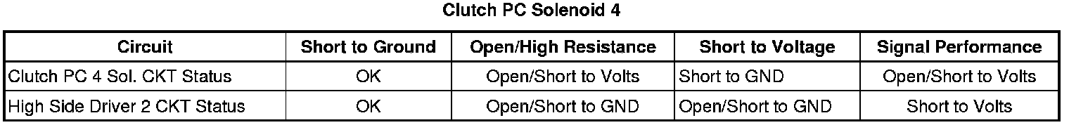 - Clutch Pressure Control (PC) Solenoid 4 Control Circuit High Voltage