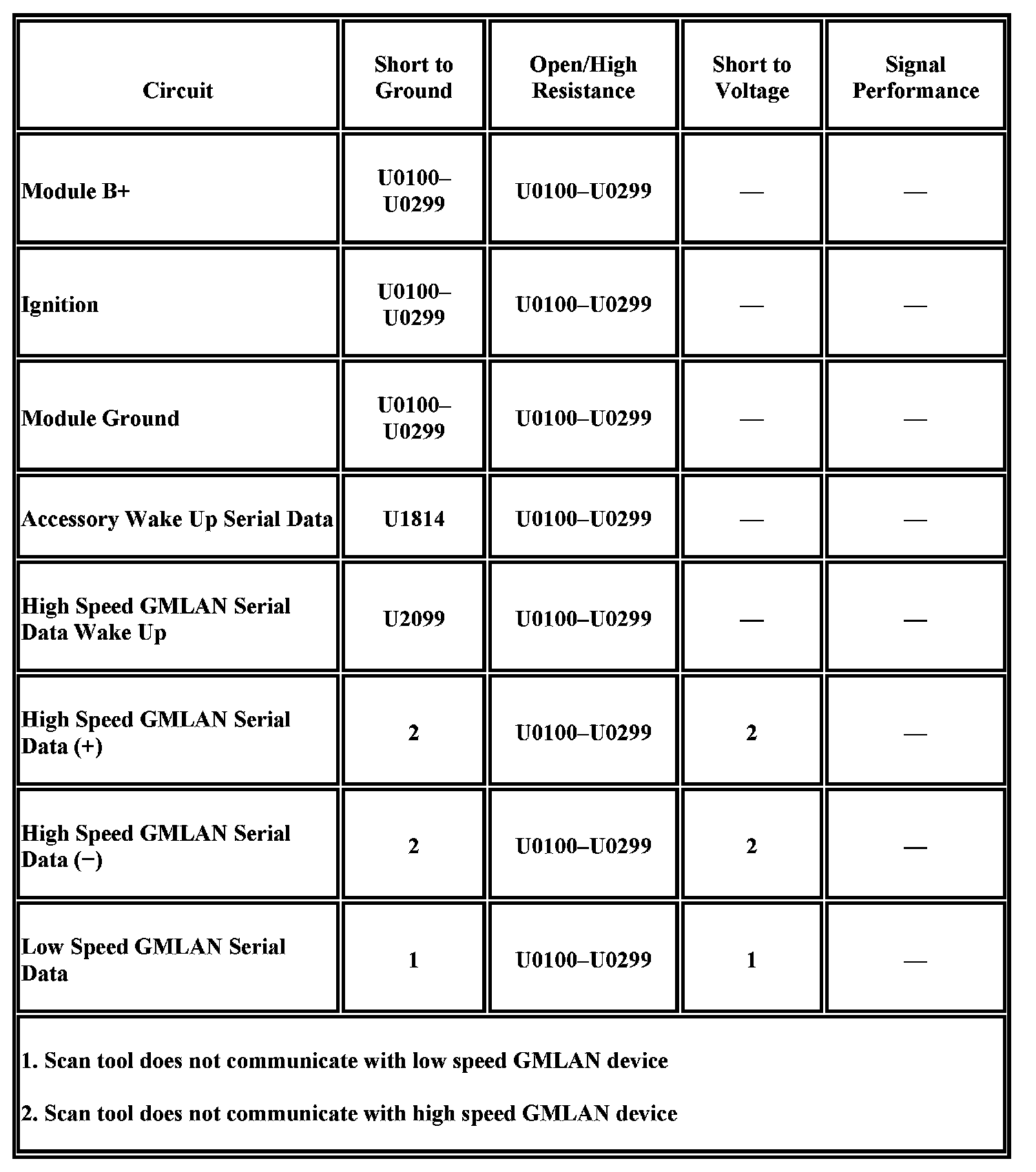 - Communication may be available between the BCM and the scan tool with either the low or high speed GMLAN serial data system inoperative. This condition is due to the BCM using both the low and high speed GMLAN systems.