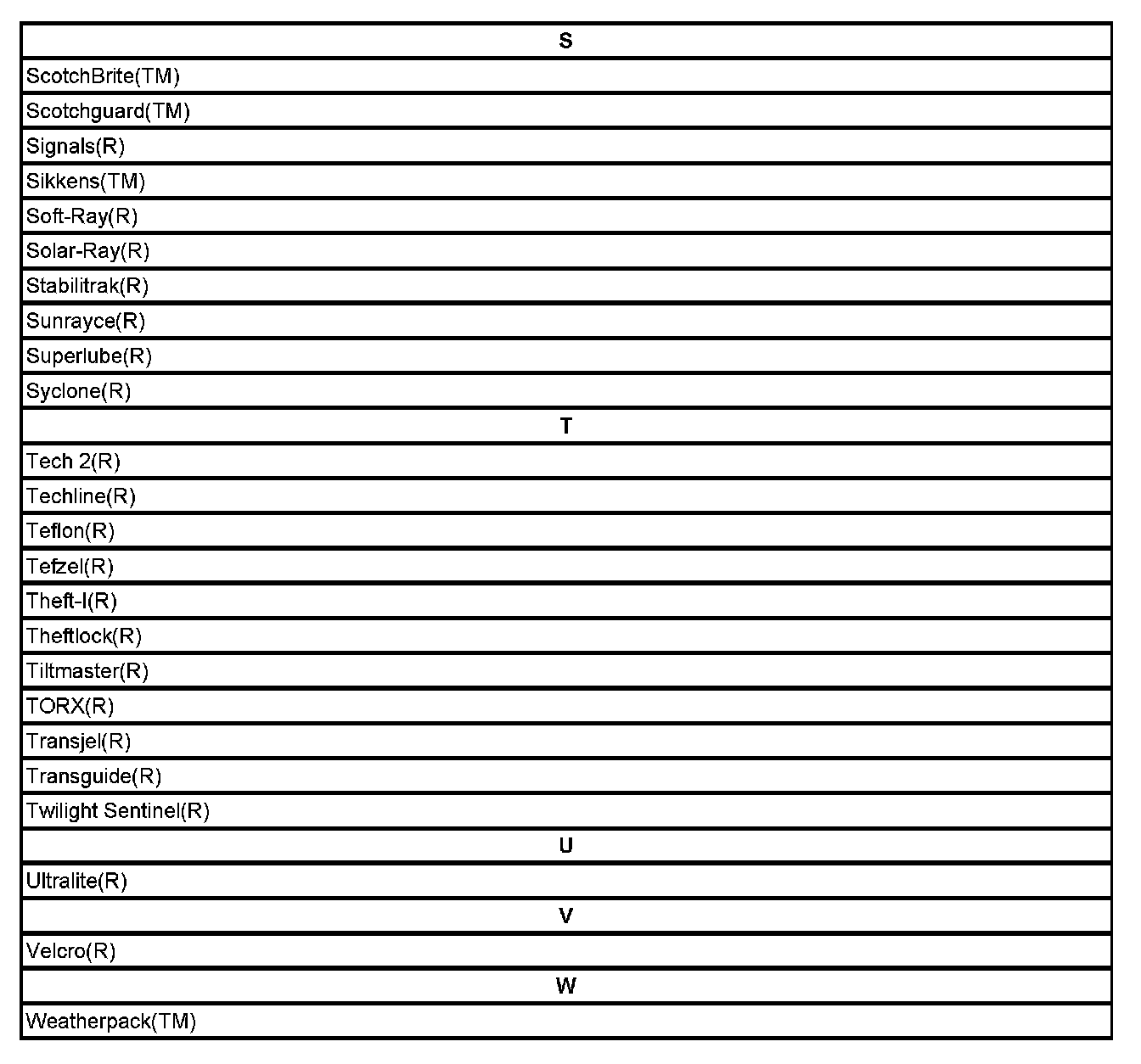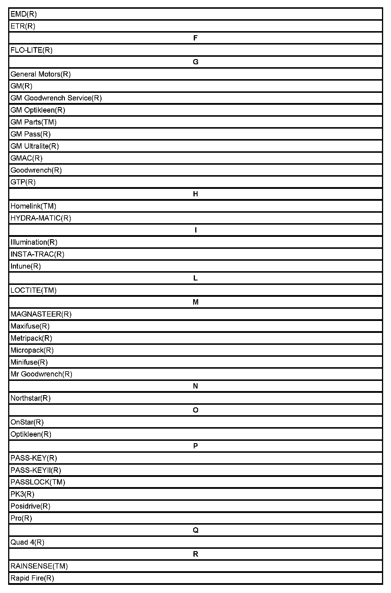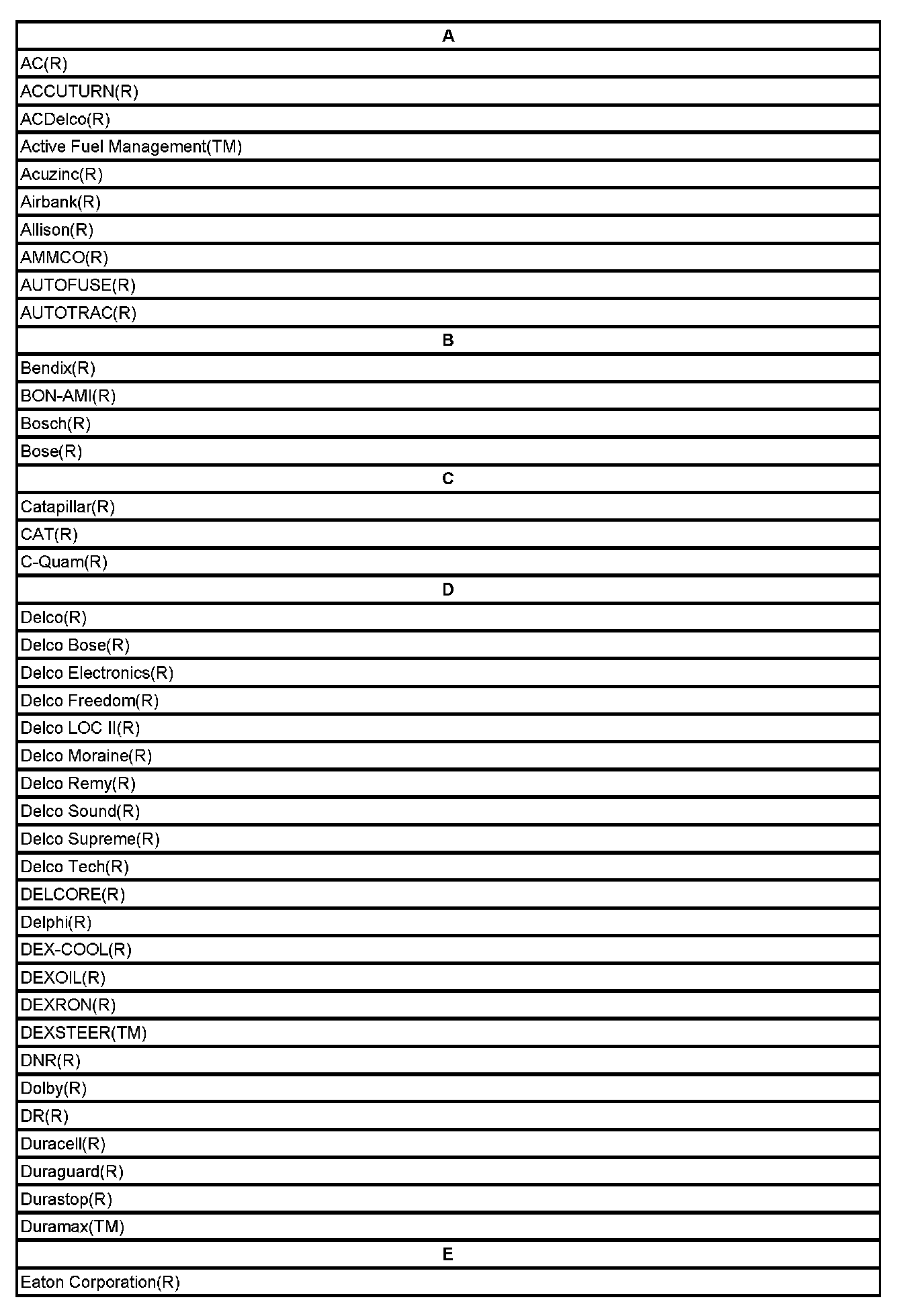 Listed below are Registered Trademarks ((R)) or Non-Registered Trademarks ((TM)) which may appear in this Service Data.
