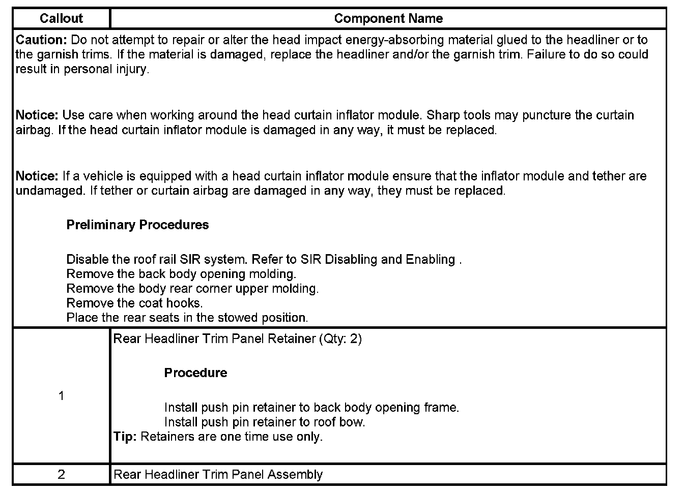 Headlining Rear Trim Panel Replacement (Extended Wheelbase)
