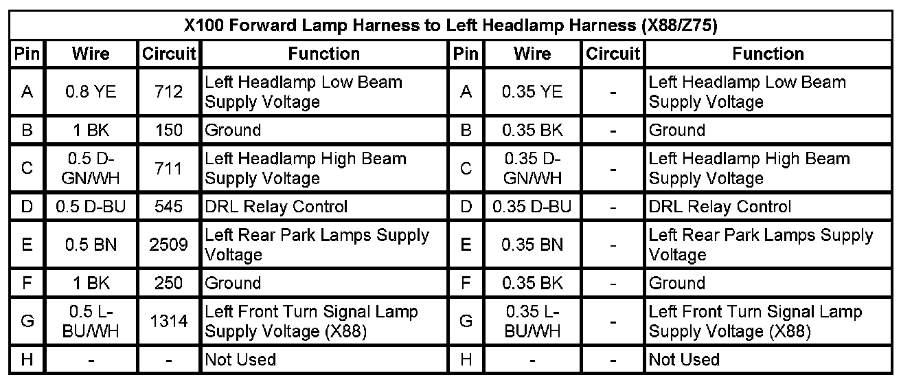 X100 Forward Lamp Harness to Left Headlamp Harness (X88/Z75)