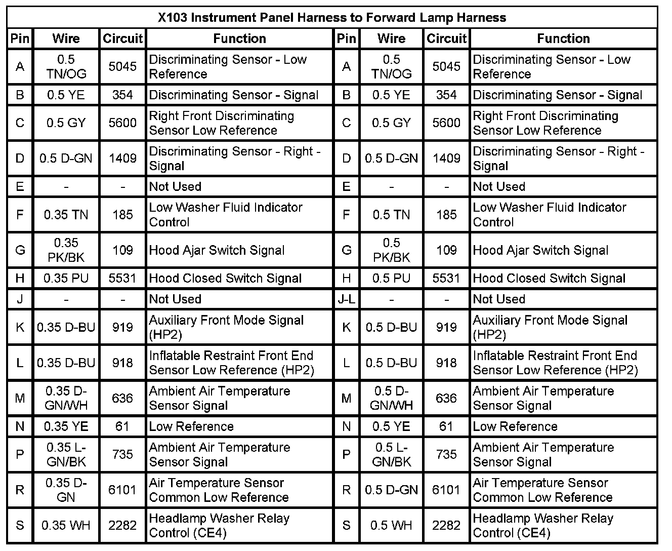 X103 Instrument Panel Harness to Forward Lamp Harness