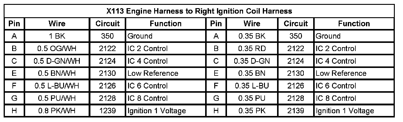 X113 Engine Harness to Right Ignition Coil Harness