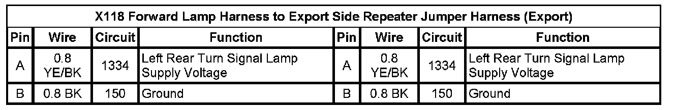 X118 Forward Lamp Harness to Export Side Repeater Jumper Harness (Export)