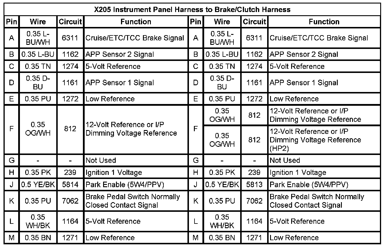 X205 Instrument Panel Harness to Brake/Clutch Harness