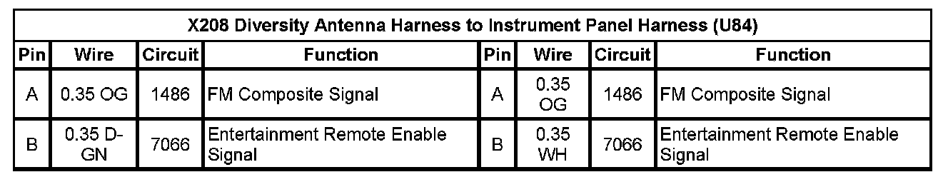 X208 Diversity Antenna Harness to Instrument Panel Harness (U84)