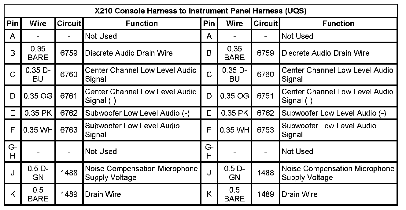 X210 Console Harness to Instrument Panel Harness (UQS)