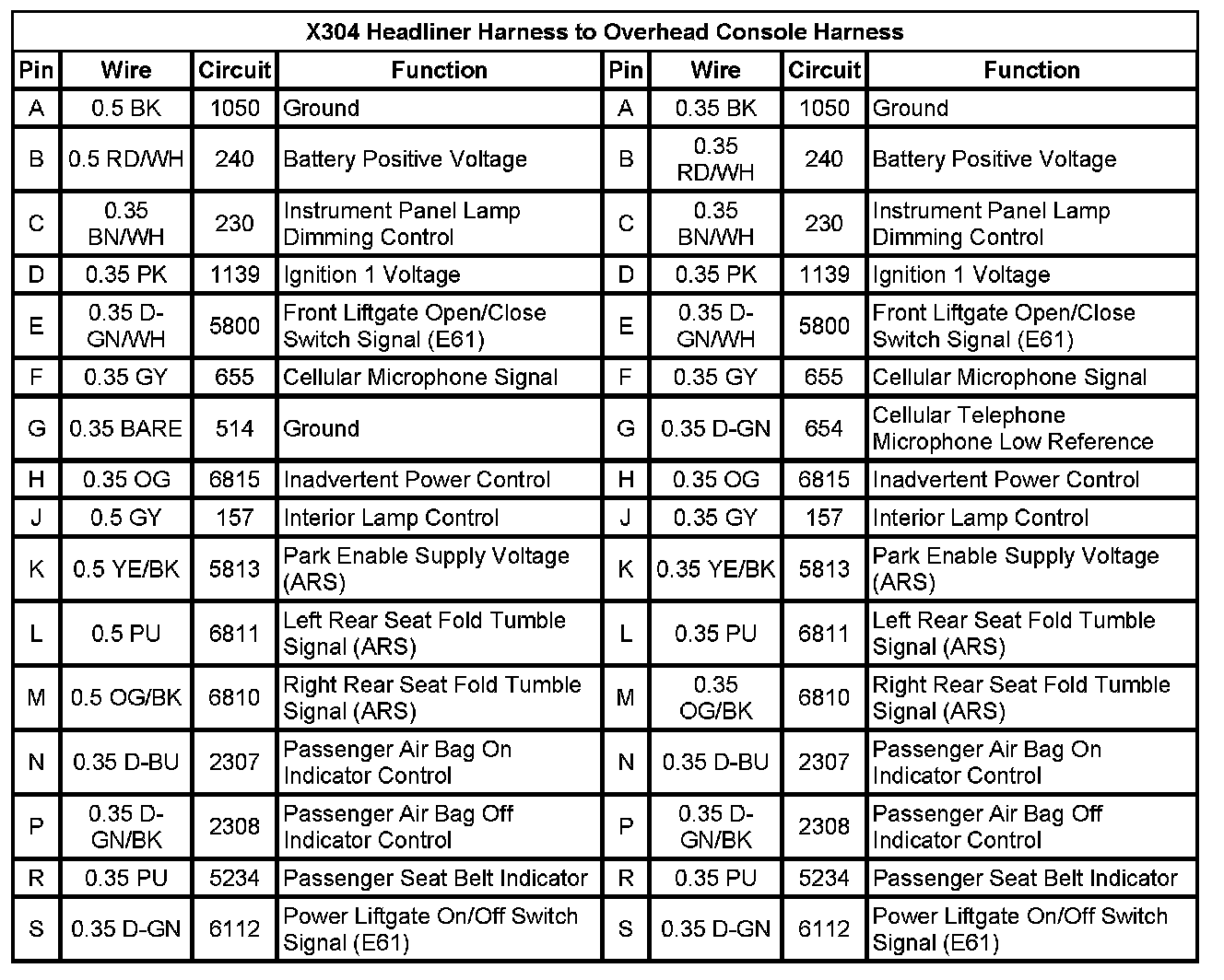 X304 Headliner Harness to Overhead Console Harness