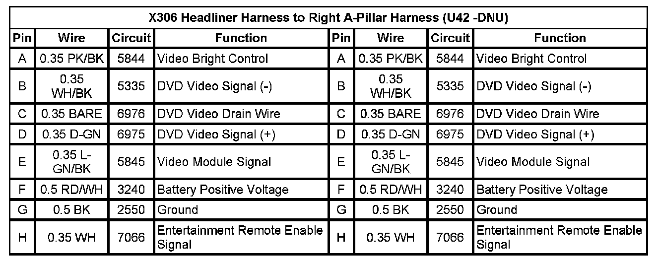 X306 Headliner Harness to Right A-Pillar Harness (U42 +DNU)