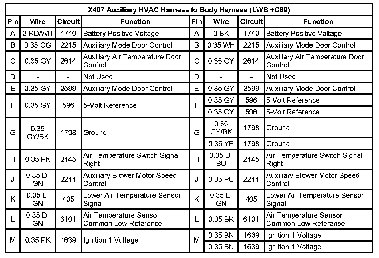 X407 Auxiliary HVAC Harness to Body Harness (LWB +C69)