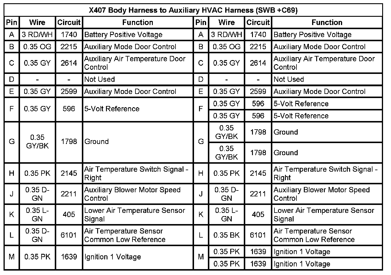 X407 Body Harness to Auxiliary HVAC Harness (SWB +C69)