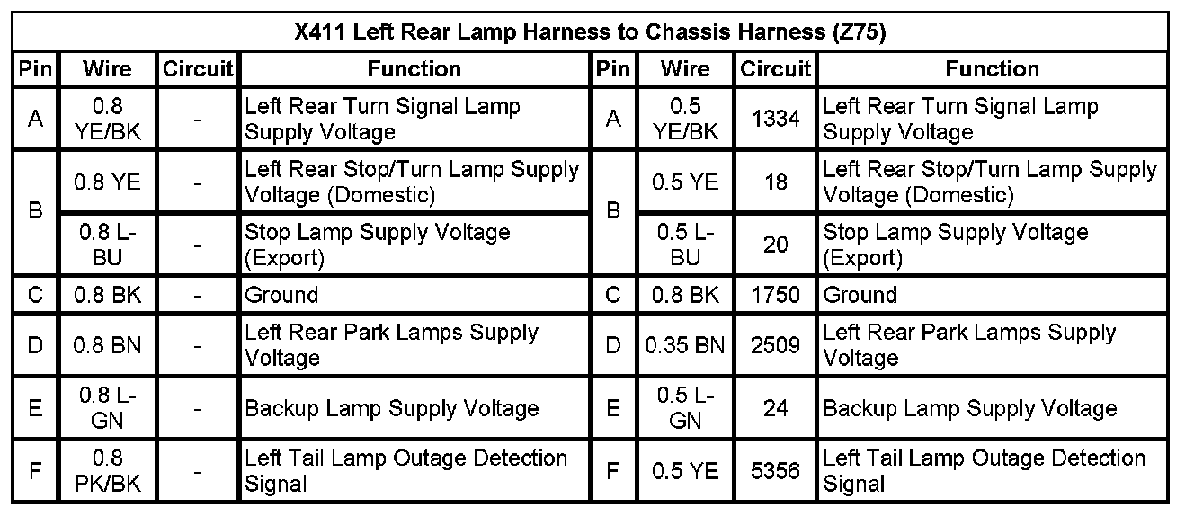 X411 Left Rear Lamp Harness to Chassis Harness (Z75)
