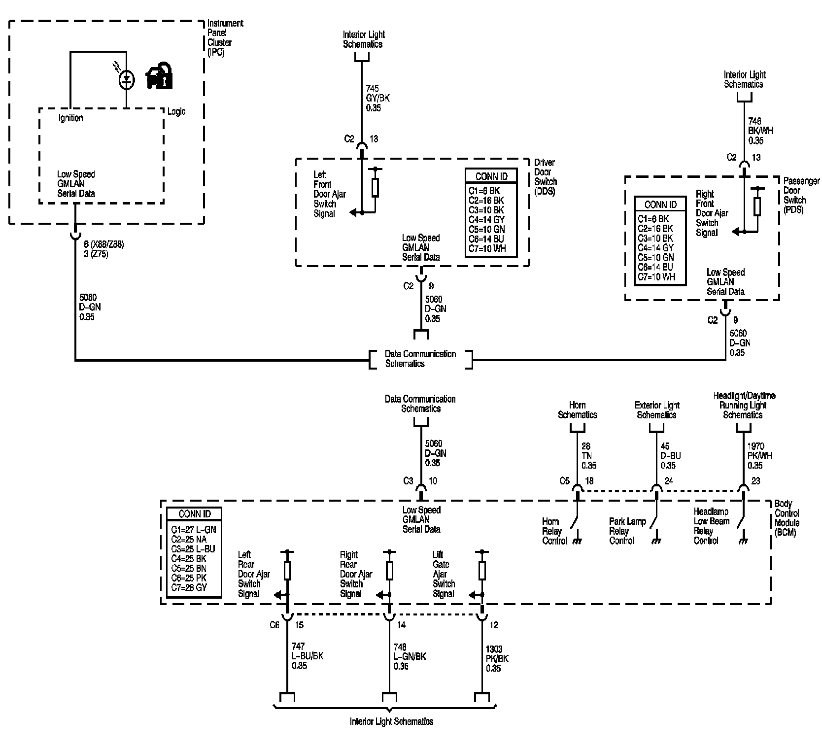Locations: The locations for the Connectors, Grounds, Splices, and Grommets shown within these diagrams can be found via their numbers at Vehicle Locations. Locations