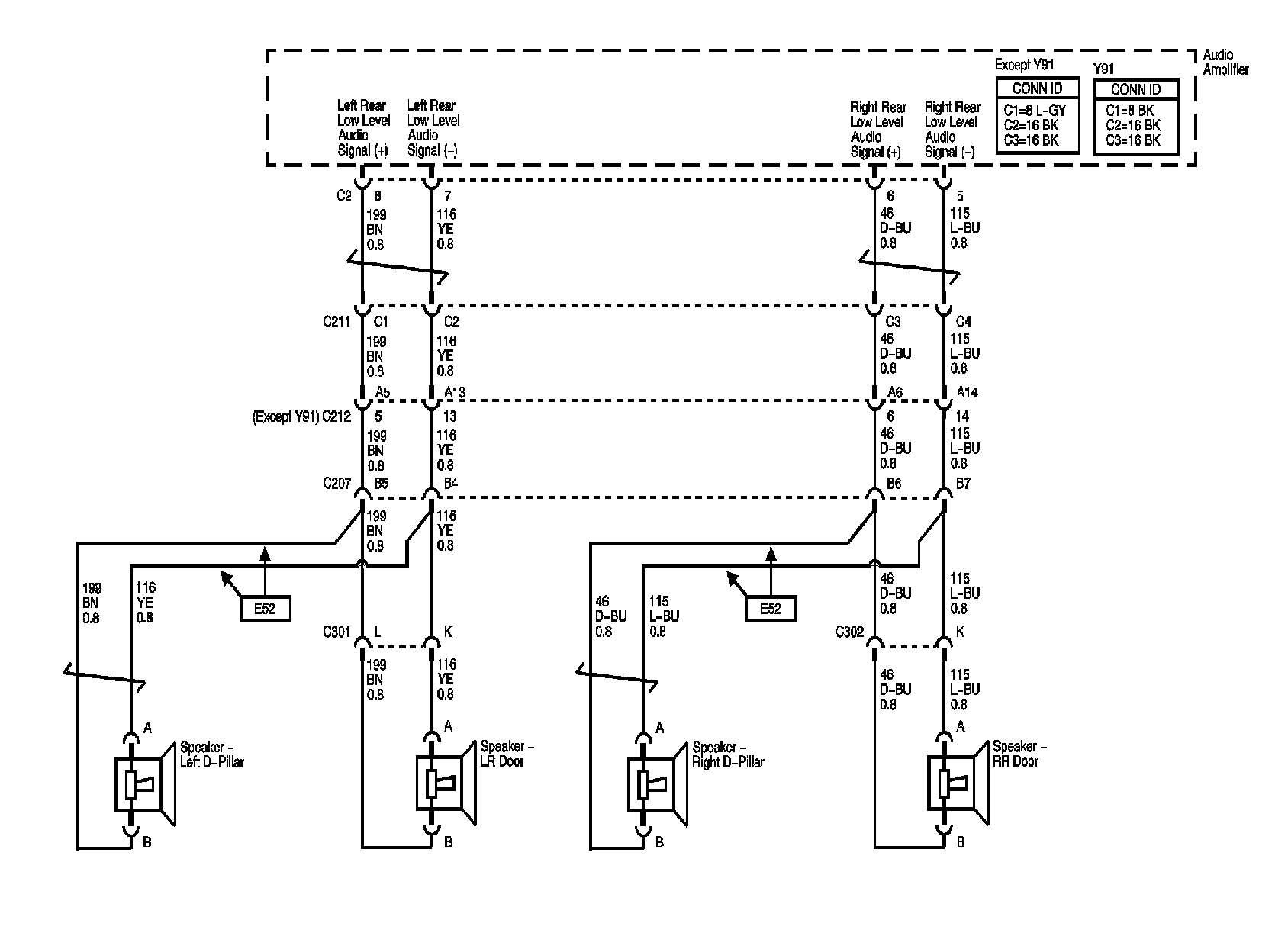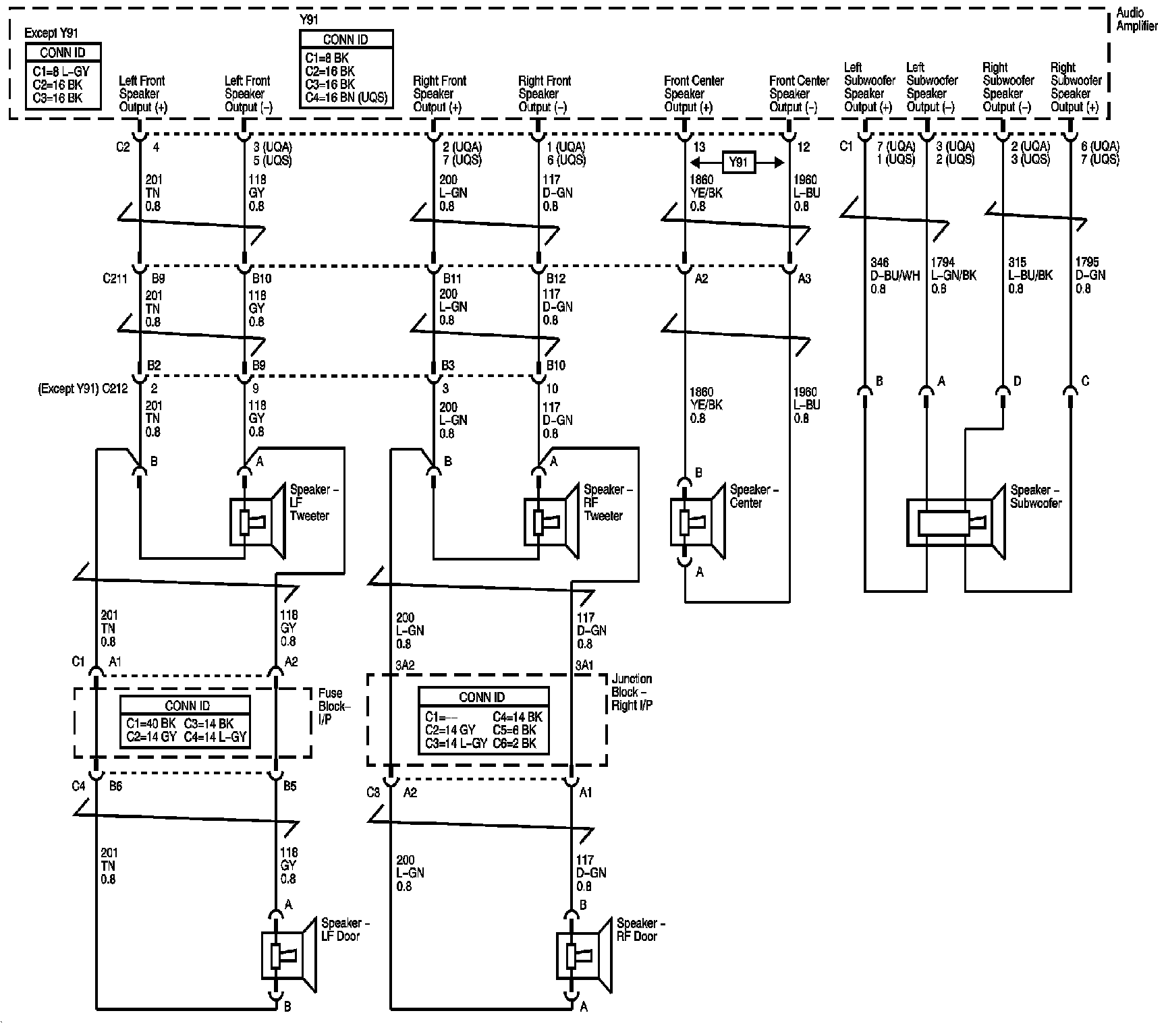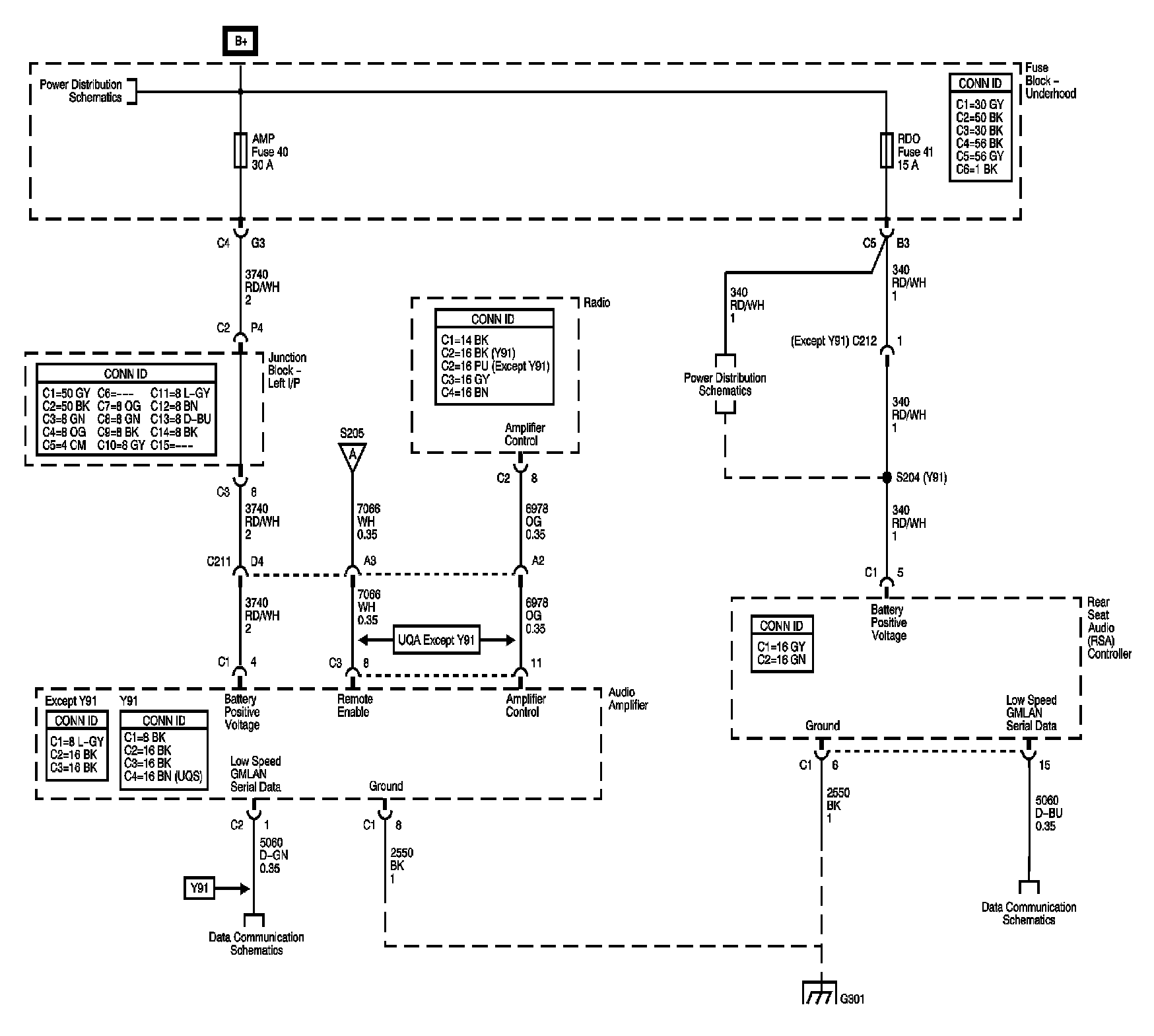 Amplifier (UQA/UQS) and Rear Seat Audio (UK6) Power, Ground, and Serial Data
