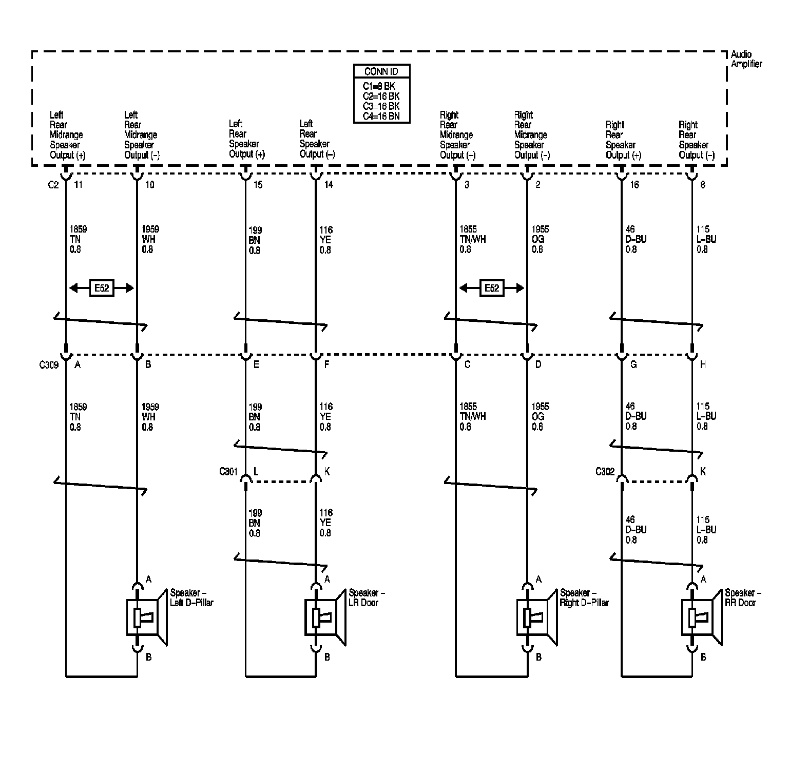 Locations: The locations for the Connectors, Grounds, Splices, and Grommets shown within these diagrams can be found via their numbers at Vehicle Locations. Locations