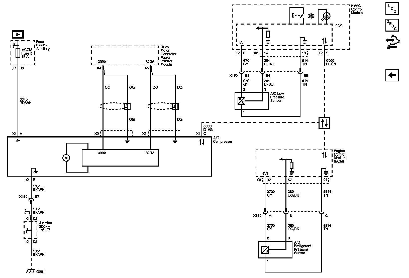Module Power, Ground, Serial Data, Front Blower Controls and Hybrid Cabin Heating