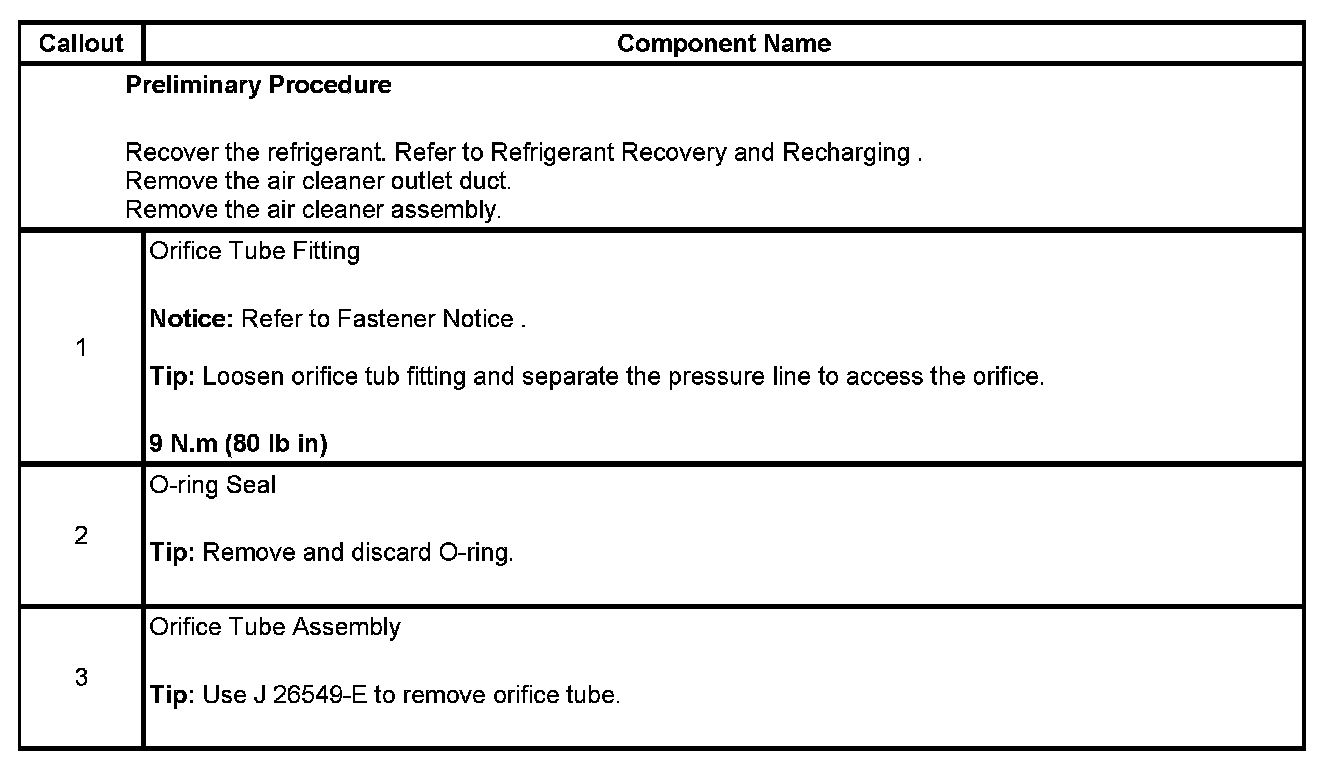 Expansion (Orifice) Tube Replacement (W/O C69)