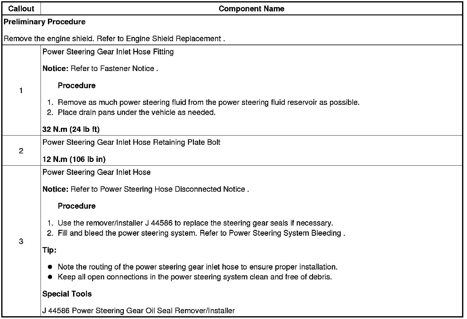Power Steering Gear Inlet Pipe/Hose Replacement (Gas Without Hydroboost)
