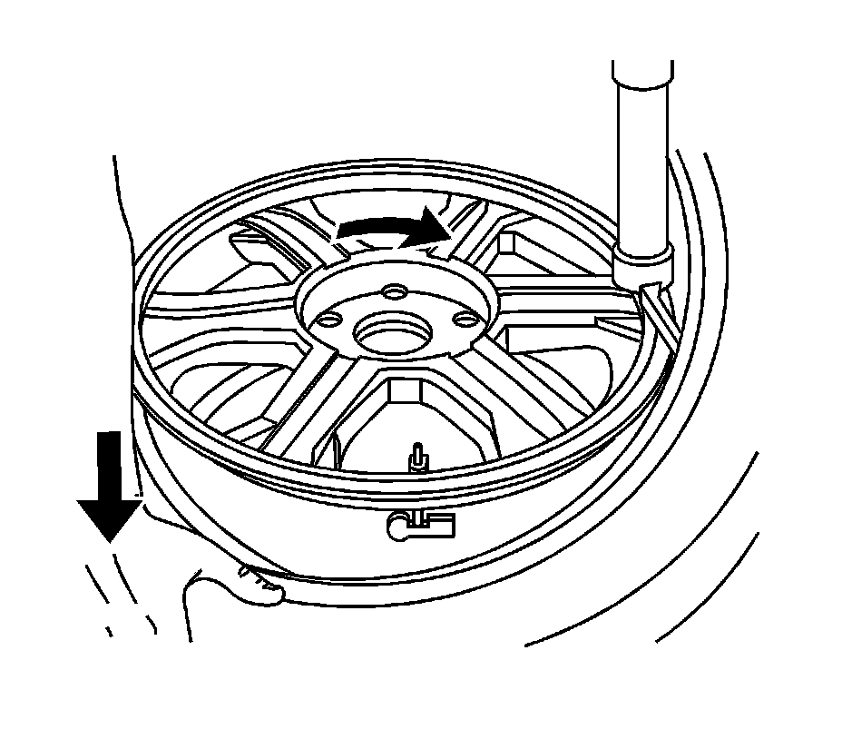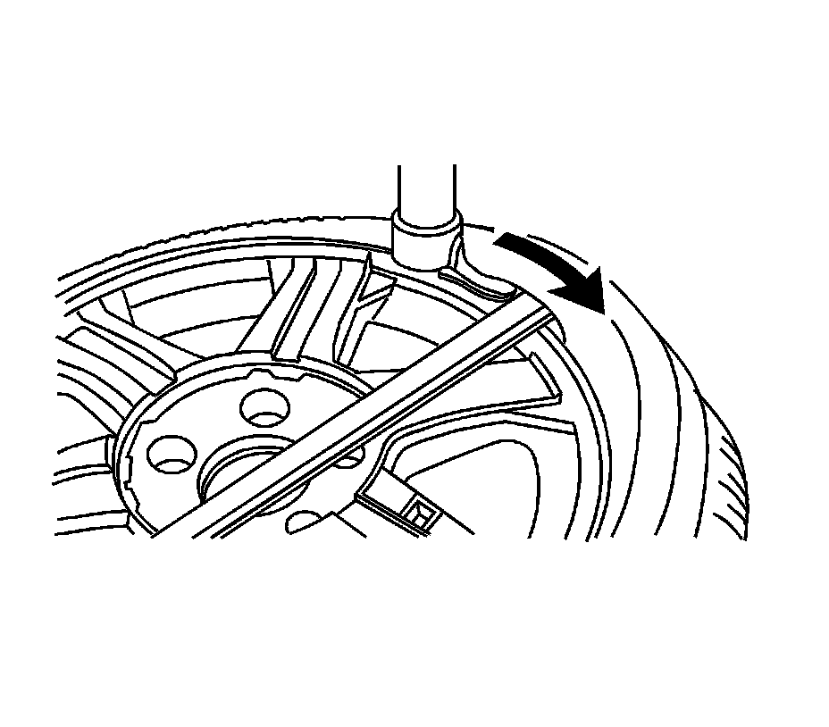 Notice: Use a tire changing machine in order to dismount tires. Do not use hand tools or tire irons alone in order to remove the tire from the wheel. Damage to the tire beads or the wheel rim could result.