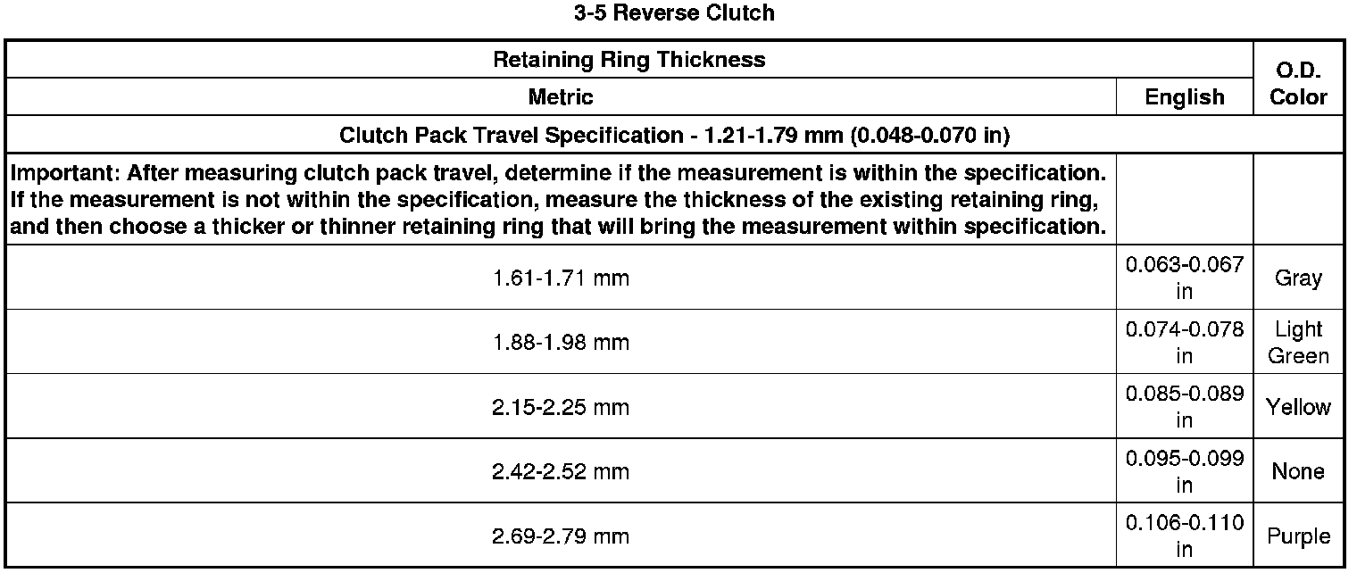 Clutch Backing Plate Retaining Ring Specifications (6L80)