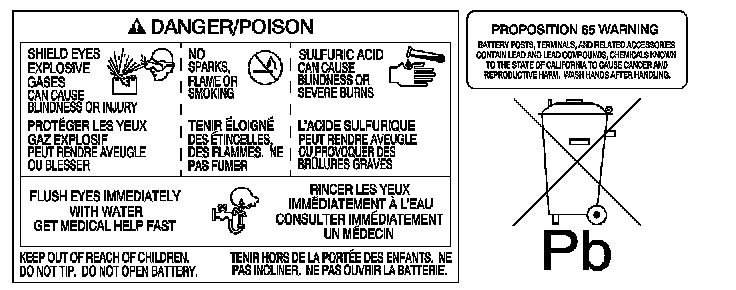 * Do not allow the battery electrolyte to contact the eyes or the skin. Flush immediately and thoroughly any contacted areas with water and get medical help.