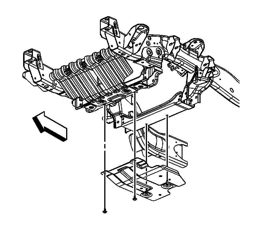 15. For 2500 series vehicles, install the oil pan skid plate and tighten the rear 2 bolts and install and tighten the front 2 bolts, if equipped.
