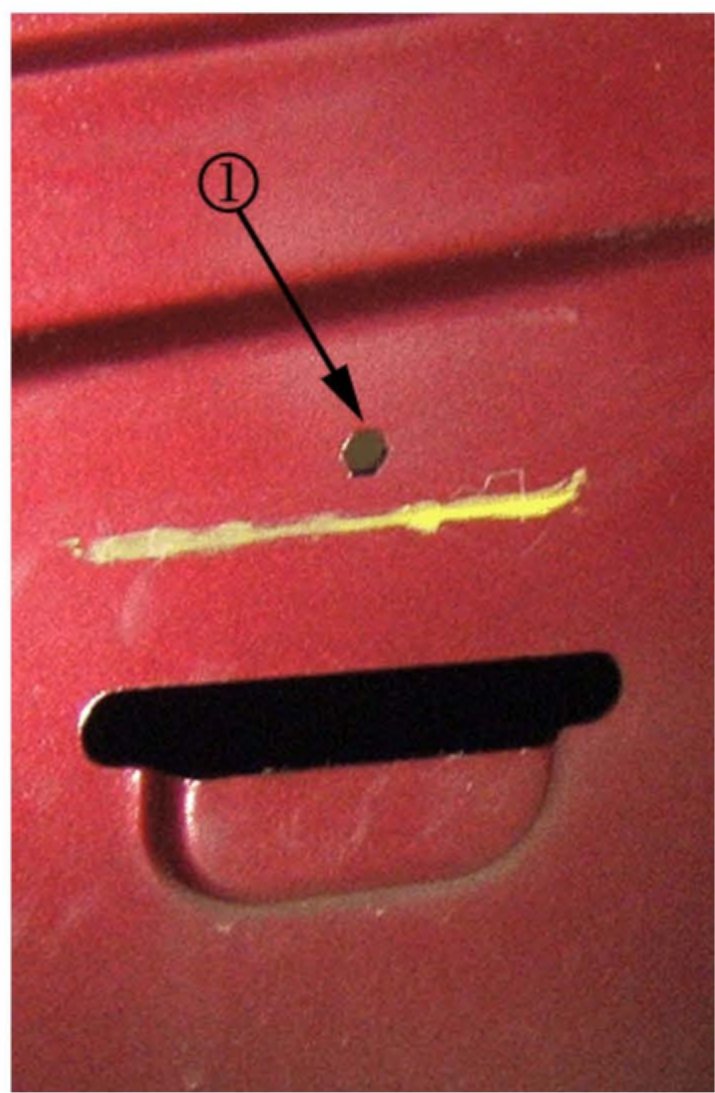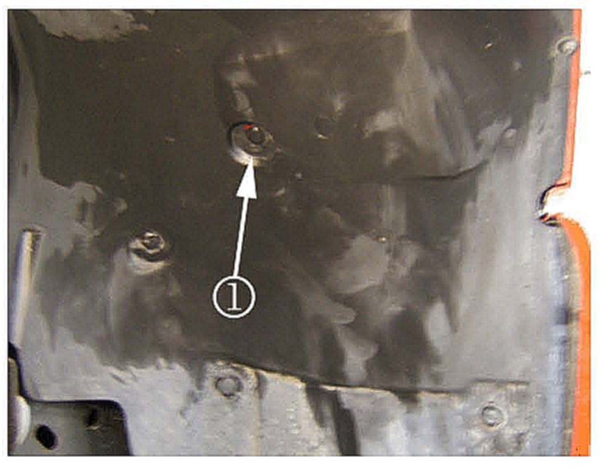 Remove the plastic retainer (1) from the right front center inner wheelhouse liner. Cut a piece of closed cell foam, P/N P46510, to 32 mm (1-1/4 in) length.