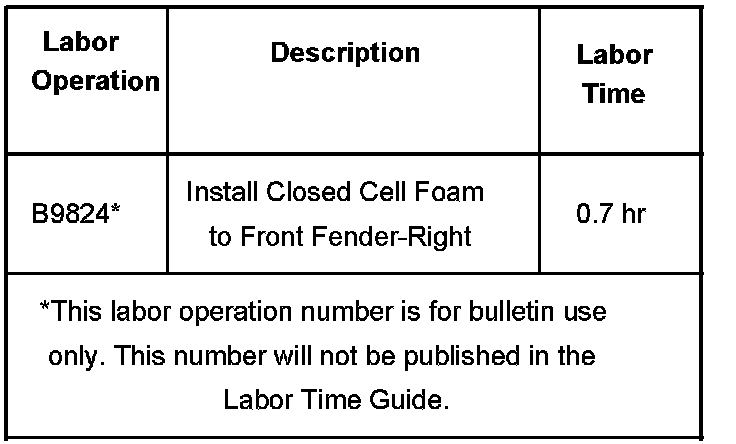 Loud Buzz or Rattle Noise from Right Front Fender Area on Moderate to Hard Acceleration and/or Braking Torquing Around 1800-2000 RPMs or Before 1-2 or 2-3 Shift (Install Closed Cell Foam to Right Front Fender)