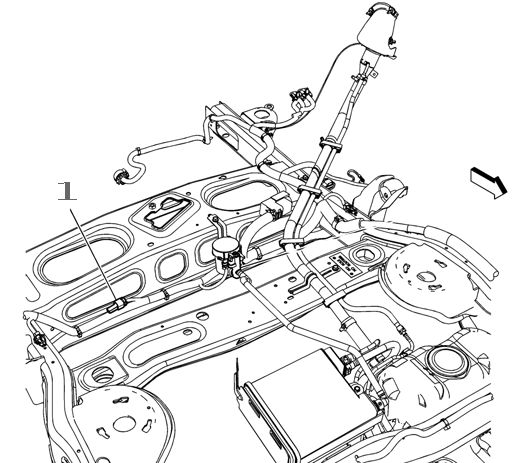 3. On the vehicle being serviced, observe the location of the data link resistor 1 (1). Inspect the wiring harness leading to the data link resistor 1, for chafed, damaged, pinched, open or shorted wiring.