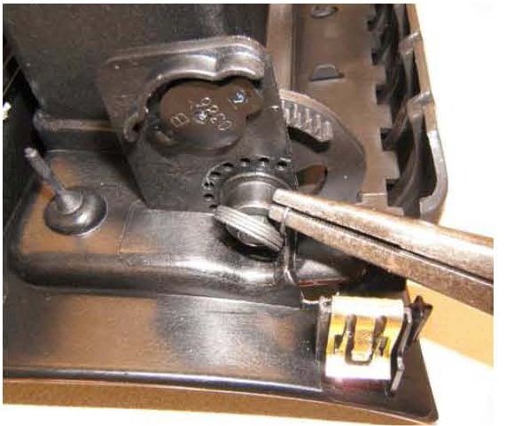 6. Insert the hooked end of the spring into its slot on the sidewall. Use the 3rd hole up (clockwise) for the ashtray spring and 4th hole up (clockwise) for the cupholder spring.