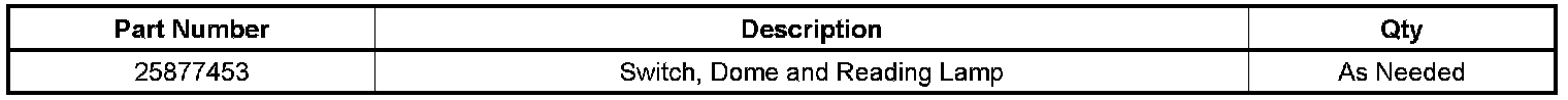 The dome and/or reading lamp switch is now available for service as a separate part. The lamp switch was formerly available as part of the entire dome lamp housing or the roof console assembly. DO NOT replace the entire overhead dome lamp assembly or roof console if the lamp switch is required.