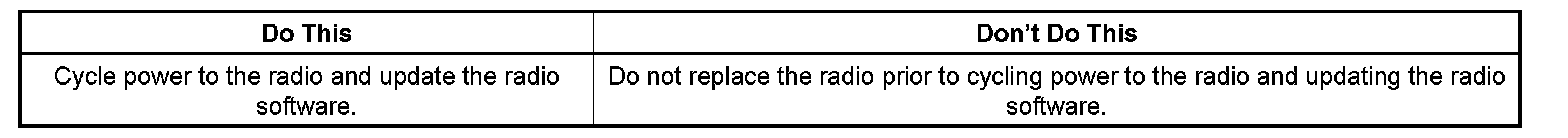 If the condition returns after the latest calibration has been programmed into the radio or the vehicle was produced after March 1, 2008, the radio will have to be replaced.