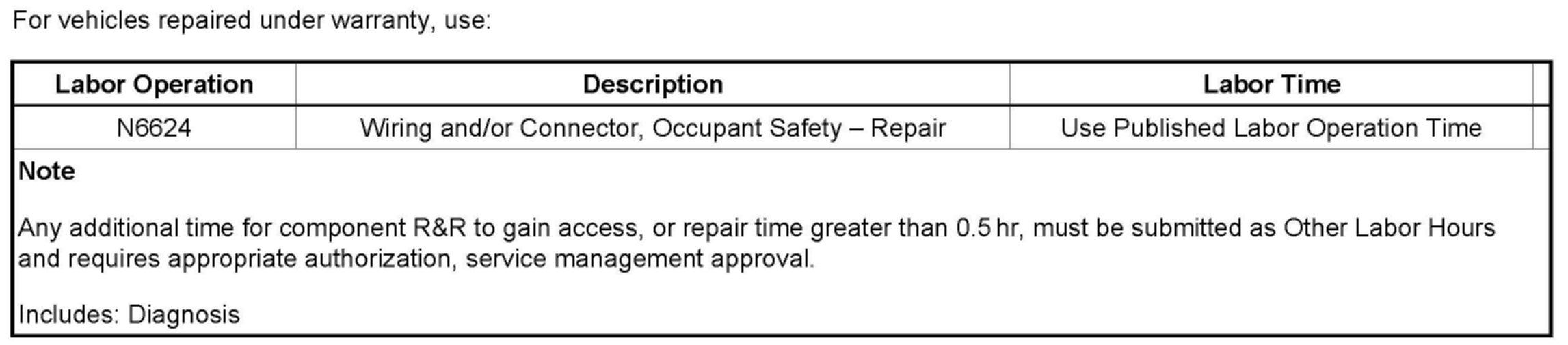 For vehicles repaired under warranty, use the table.