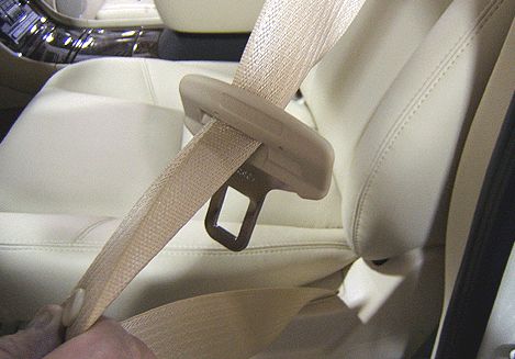 Some customers may comment that the seatbelt latch plate is reversed on the belt webbing or that they have to twist the webbing before buckling the seatbelt. This condition can be visually verified by inspecting the location of the latch plate tongue. If the tongue is between the webbing and the pillar post, it is reversed.