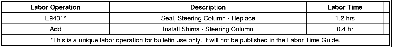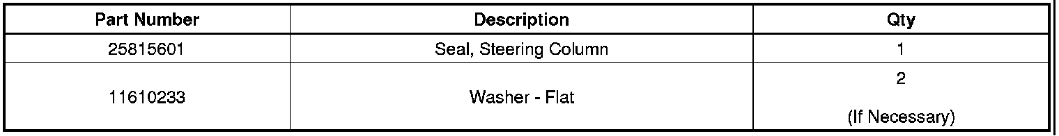Replace the steering column seal with P/N♦25815601. Refer to Steering Column Seal Replacement in SI. The new seal has a larger outside diameter to accommodate the steering column intermediate shaft orientation.