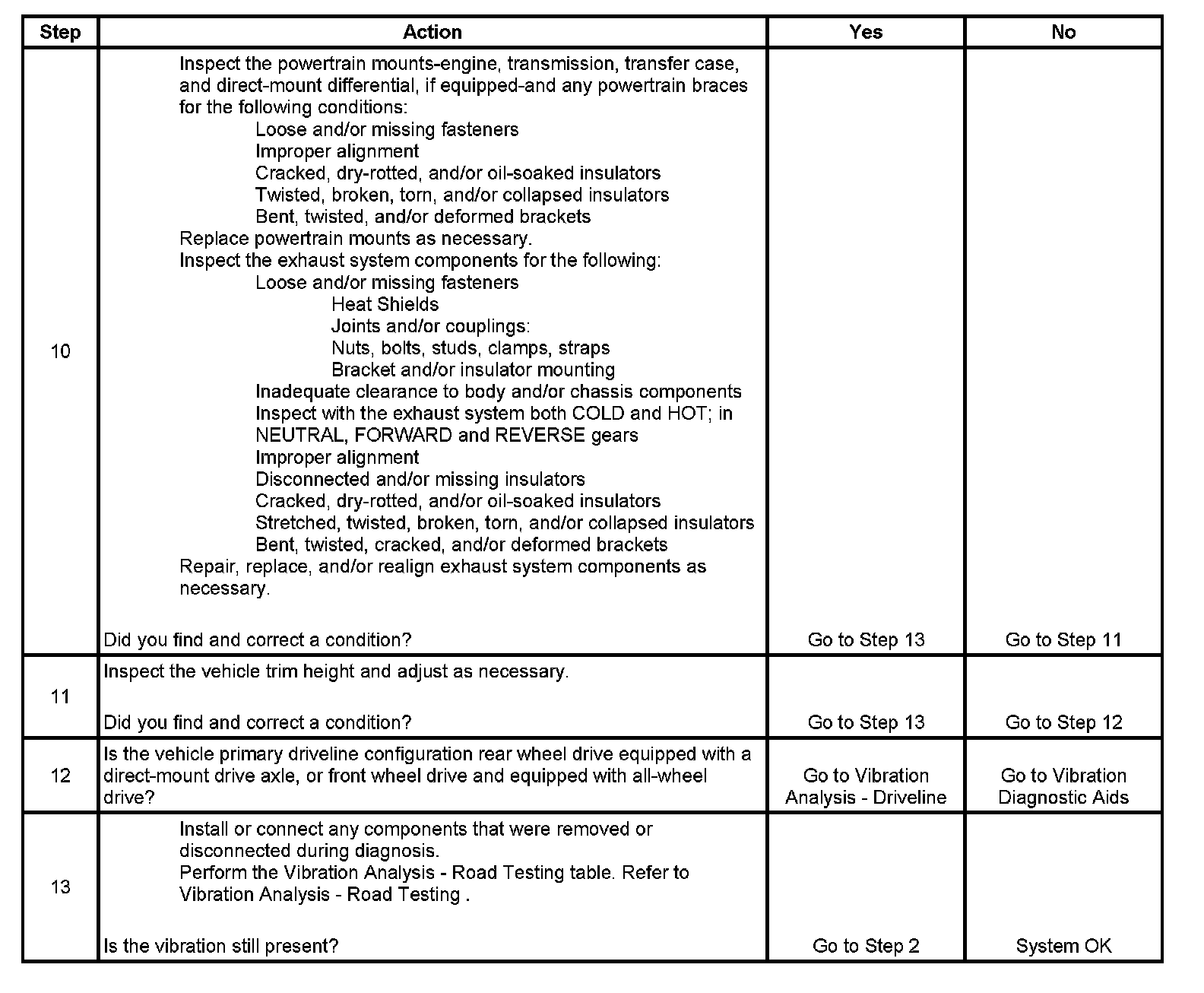 10. Damaged or worn powertrain mounts and/or exhaust mounts may cause a noise or vibration that may be transferred into the passenger compartment.