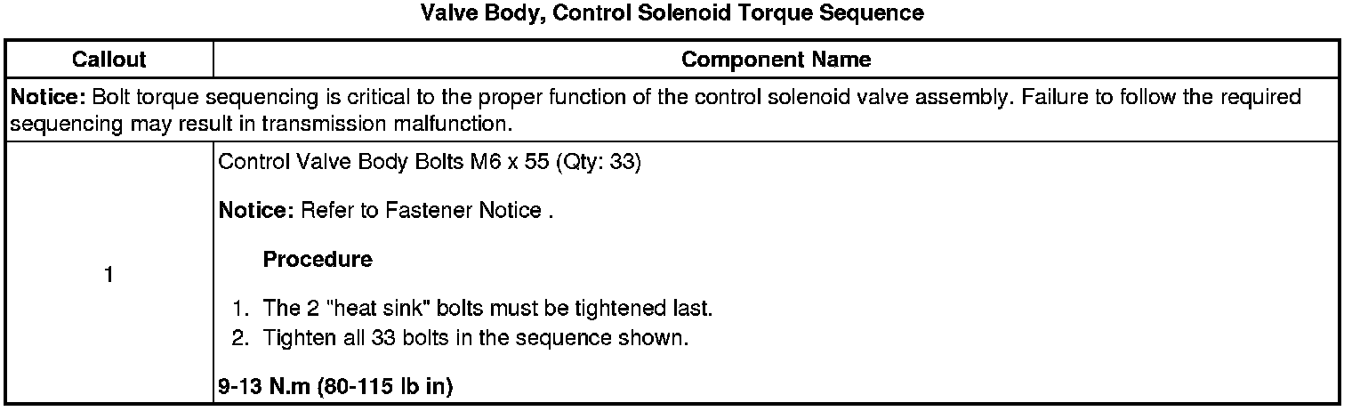Valve Body, Control Solenoid Torque Sequence