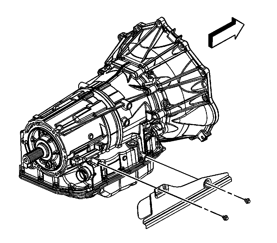 13. Install the 2 bolts securing the heat shield to the transmission.