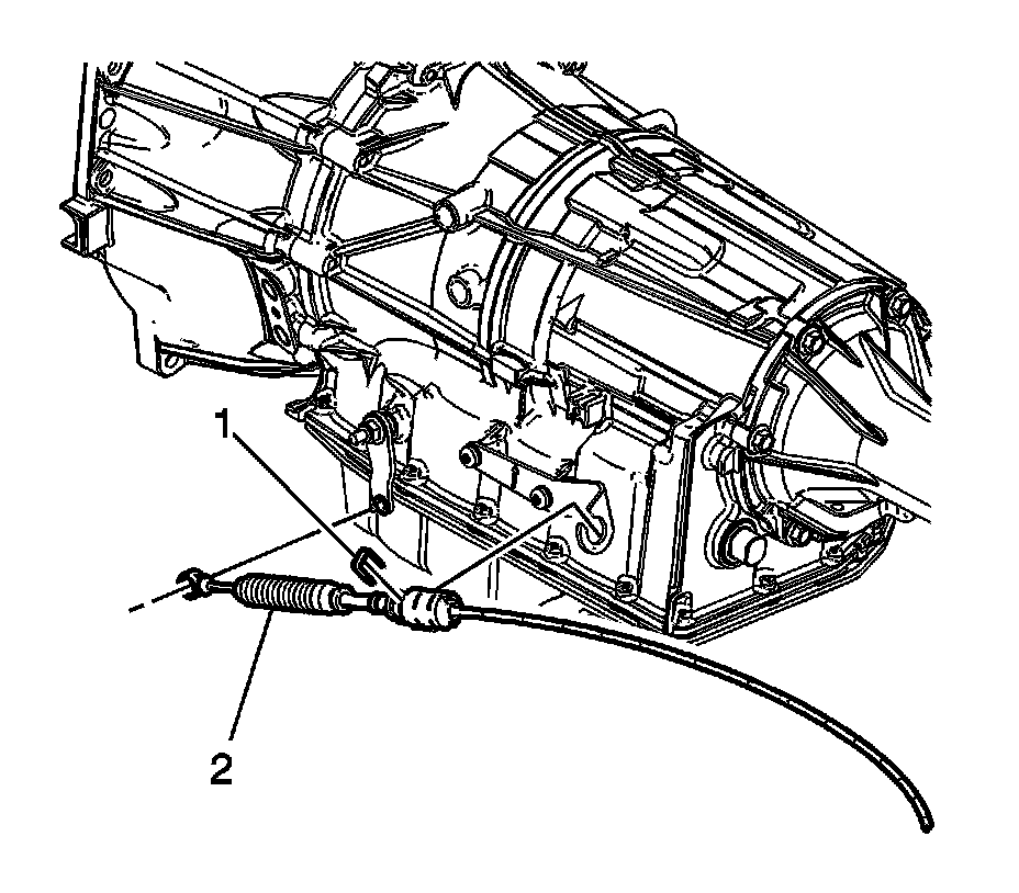 14. Remove the range selector cable (2) from the transmission range selector lever ball stud.