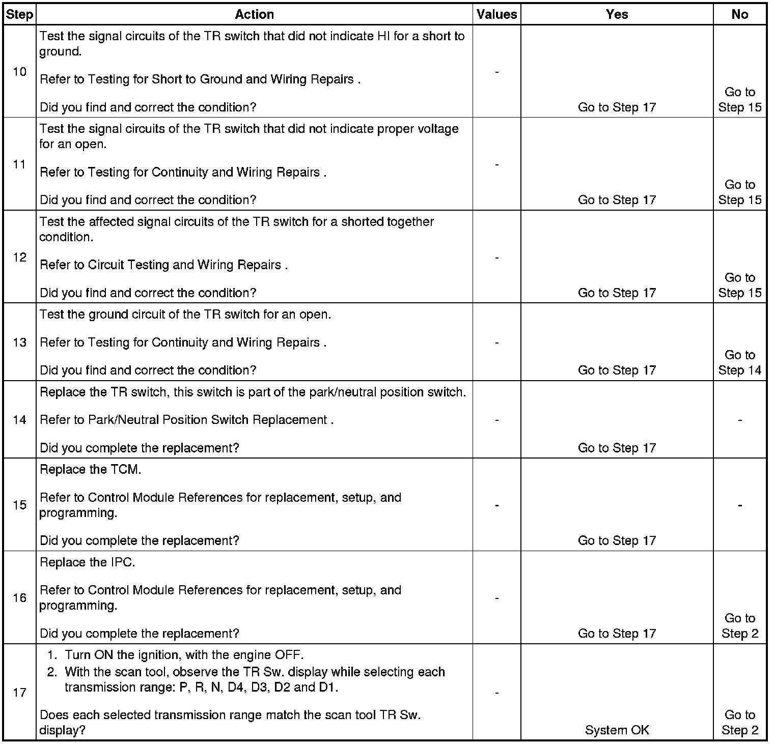 5. This step tests the TR switch wiring for an open or the lack of the signal voltage from the TCM.