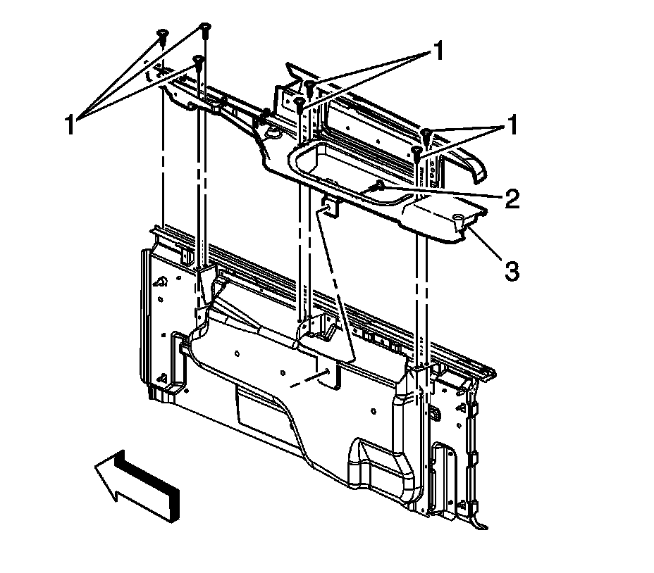 7. Remove the bolts (1) from the top of the stowage lid.