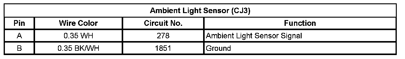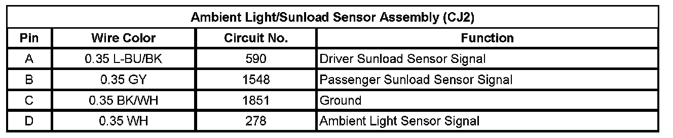 Ambient Light/Sunload Sensor Assembly (CJ2)