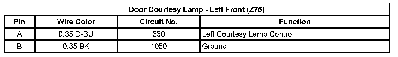 Door Courtesy Lamp - Left Front (Z75)