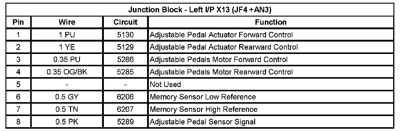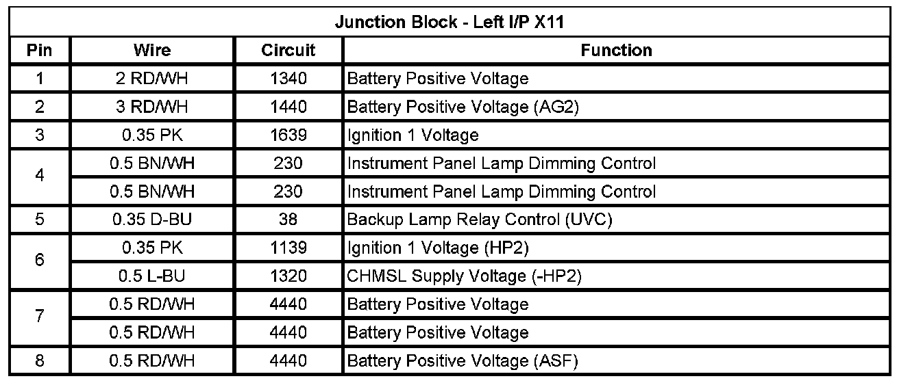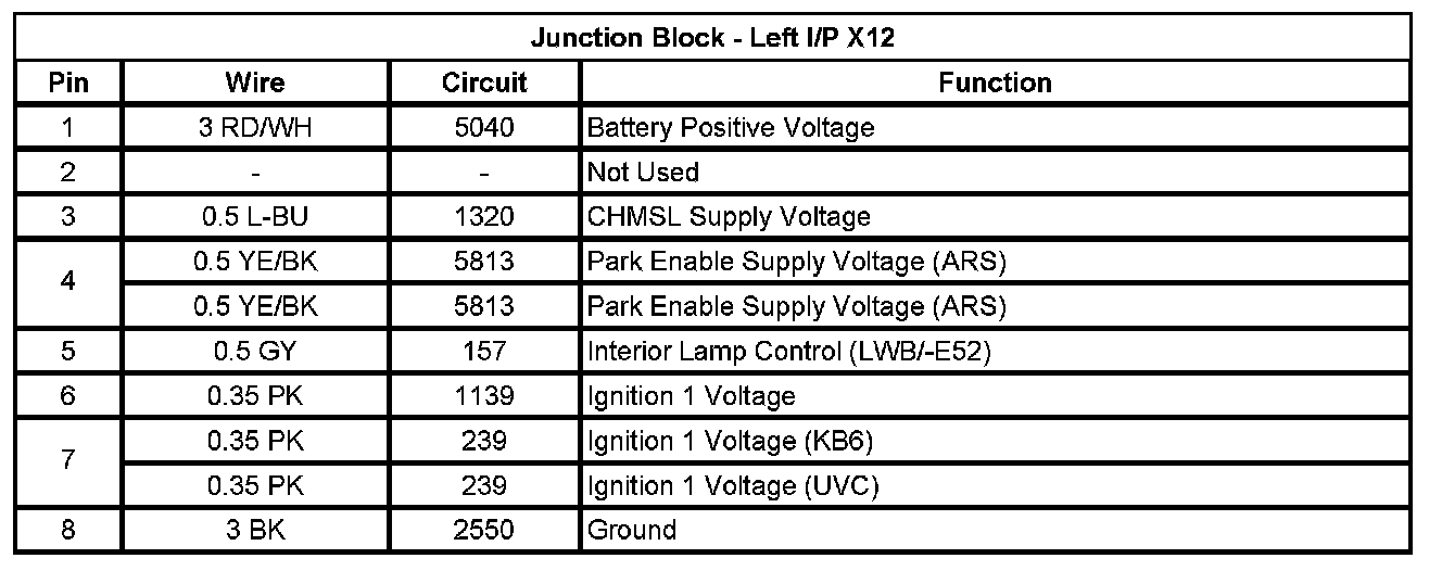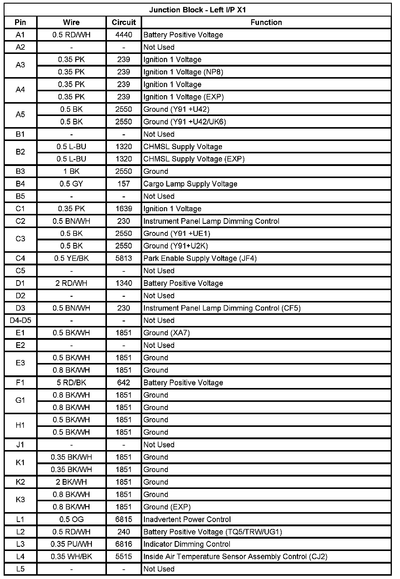 Junction Block - Left I/P X1 (Pin A1 To L5):