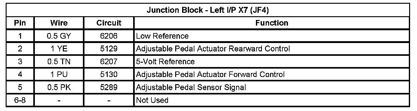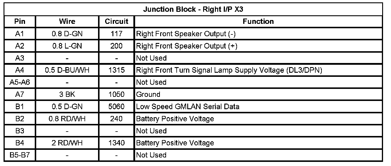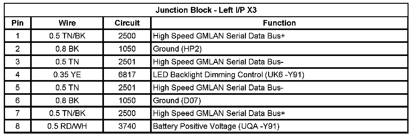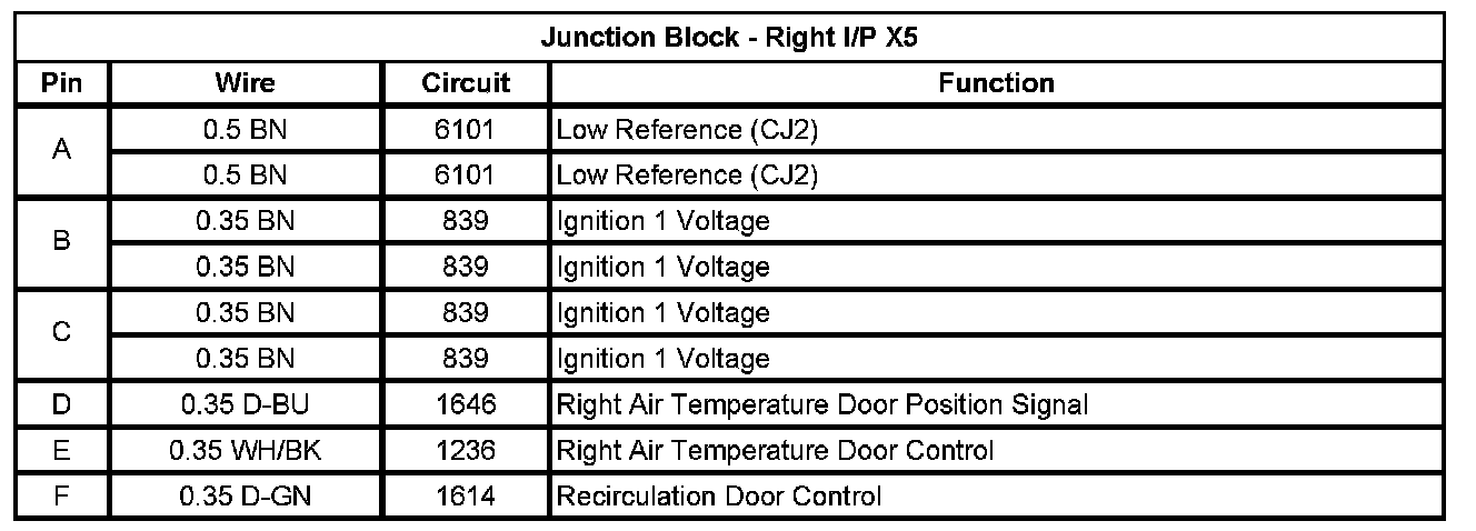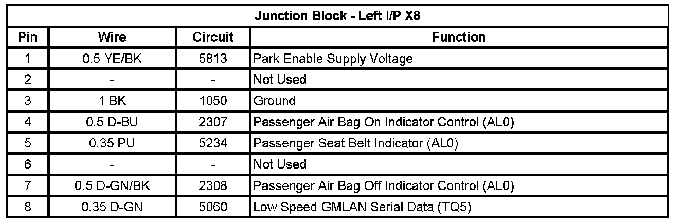 Junction Block - Left I/P X1 (Pin A1 To L5):