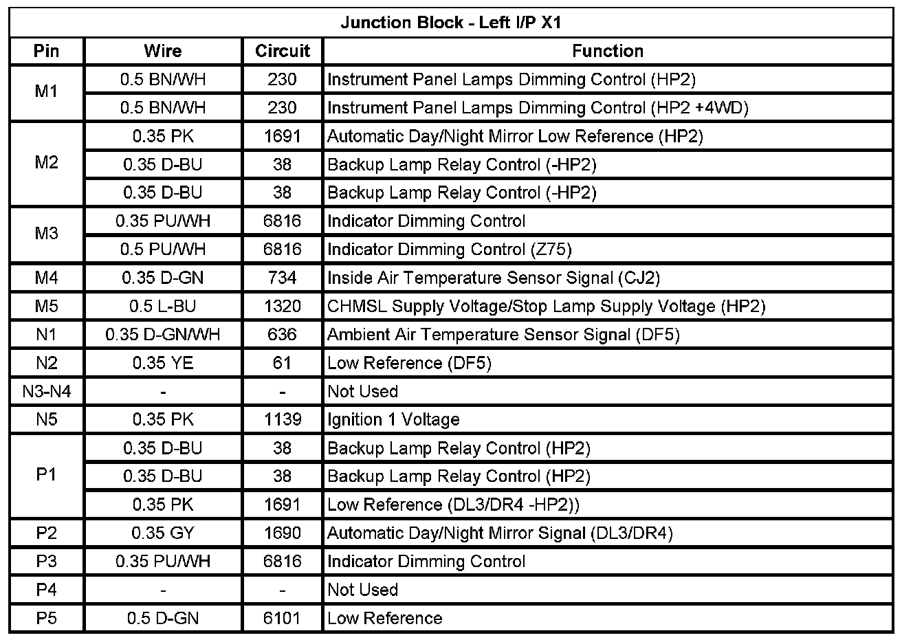 Junction Block - Left I/P X1 (Pin M1 To P5):