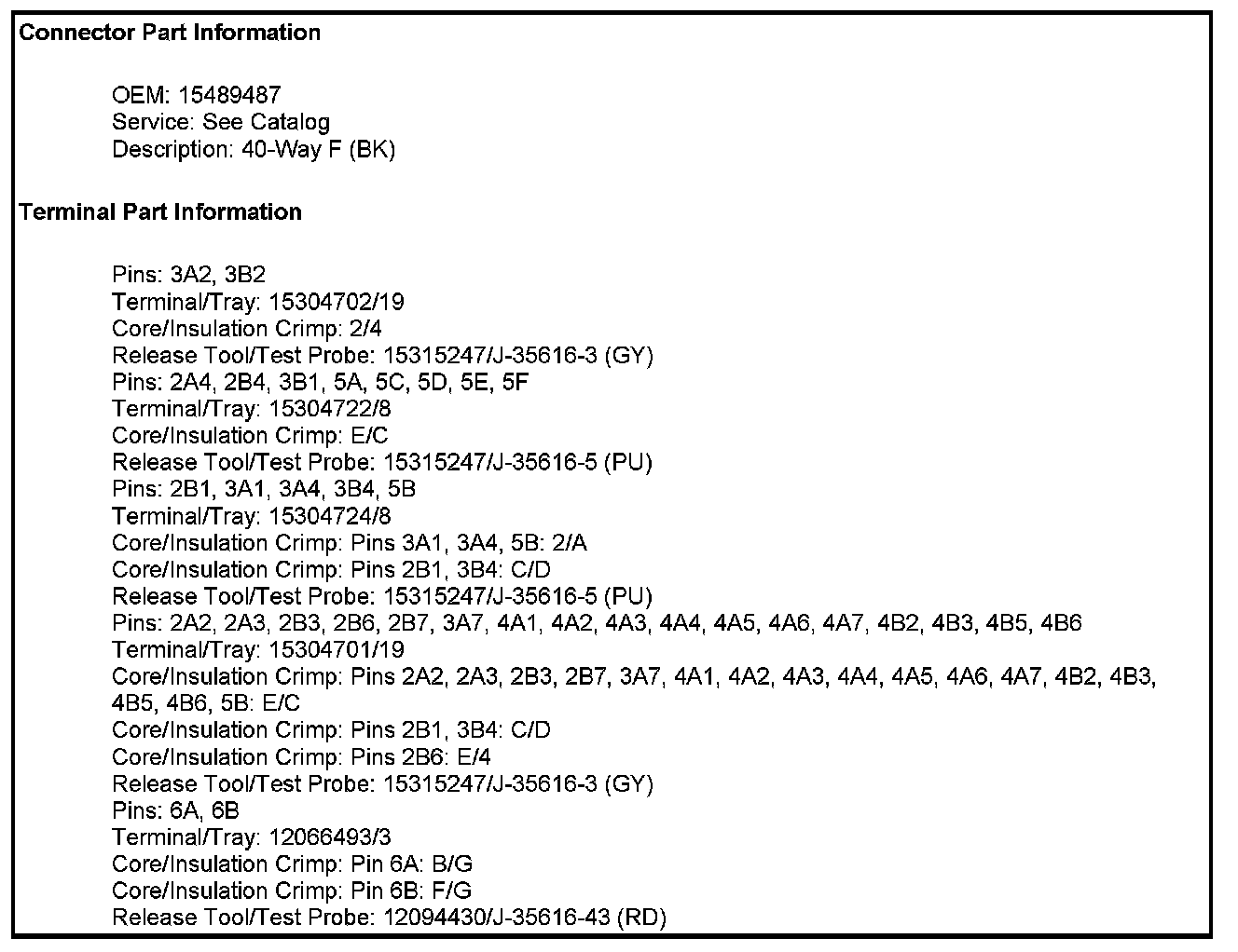 Junction Block - Right I/P X1 (Wire Entry) (Pin 5F To 6B):