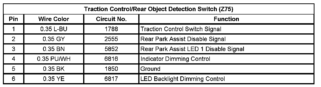 Traction Control/Rear Object Detection Switch (Z75)